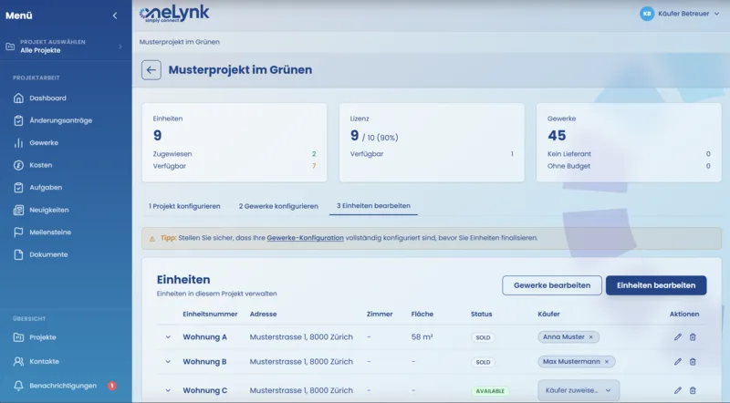 «Welche Fliesen haben wir gewählt?» «Ist das noch im Budget?» «Bis wann müssen wir uns entscheiden?» — täglich, von 30 verschiedenen Käufern per E-Mail, WhatsApp und Telefon.